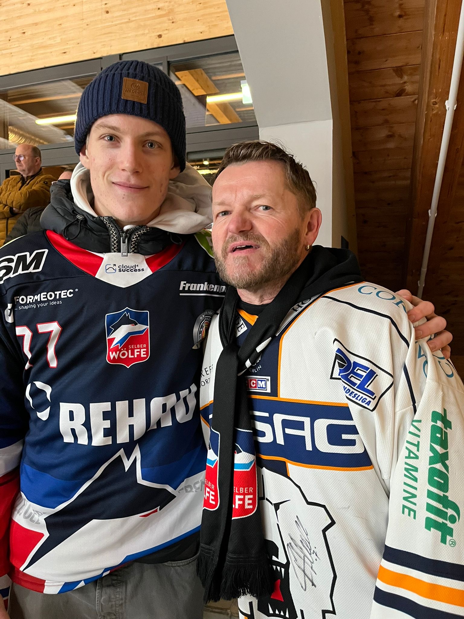 Nach 2024 und 2025, wie schnell doch so die Jahre vergehen. Aber immer wieder gerne geht es zu den Selber Wölfen. Leider nur noch Oberliga Süd, aber tolle Halle und Fans. Der Franky nun nicht mehr auf dem Eis dabei aber mit der 77 spielt Jonas als Verteidiger bei den Großen.